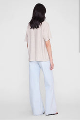 The Cade Tee is cut for a boxy fit with a loose neckline and a slightly shorter body than the Lili Tee. Take your true size.