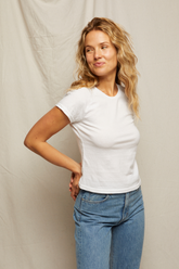 Featuring a 90s shrunken fit, this crew-neck tee is crafted in signature recycled cotton.