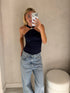 This tank top features a unique halter style neckline, perfect for showing off your shoulders while still maintaining modest coverage. Perfect from day to night.