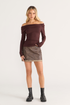 Soft, slinky and just a little bit spicy, The Liz Top is your new wardrobe essential. Featuring a flattering off-shoulder neckline with ruched crossover detail, this long sleeve number hugs in all the right places while still keeping it effortlessly cool. The rich coffee tone adds warmth and depth, pairing perfectly with vintage denim, leather minis or tailored trousers. It's giving date night, long lunches, rooftop drinks all of the above.