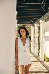 Embroidery Tie Vest White