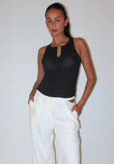 The FINE HENLEY CLASSIC TANKby CHOSEN is the made from a soft to touch light weight, semi sheer ribbed knit, with a crew neckline, featuring henley button down placket.
