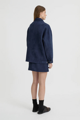 Refined, sleek, and endlessly versatile — the Fraser Skirt is your new wear-on-repeat essential. Crafted from a luxe suede-effect fabric in a rich navy tone, this mini skirt delivers a smooth finish with subtle structure, giving it a polished yet effortless look. The clean, tailored lines and minimalist silhouette make it a perfect partner for both elevated and casual styling.