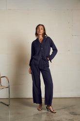The hana bottom is part of our tencel holiday collection, designed with a relaxed fit and subtle sheen that catches the light. With an easy pull-on waistband and fluid drape, this pant brings polish to comfort.