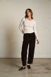 The inna top is crafted in a sheer lightweight french jersey that feels featherweight against the skin. Designed with intentional sheerness, it creates a sleek and modern silhouette that works on its own or layered with your favorite pieces. Creates a more vintage look after each wash.