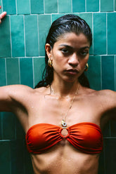 The Isabella Bandeau Bikini Top by Jatali Swim is the epitome of sleek, modern elegance. Designed in a clean bandeau silhouette that enhances the natural form, Isabella is elevated by a striking gold ring centerpiece, adding a refined edge and understated sophistication. Offering a supportive, secure fit with full lining and finished with a gold back clasp closure, she balances comfort with allure effortlessly. Crafted from premium Italian Lycra for exceptional stretch and durability, Isabella is made for sun-drenched escapes and confident moments.