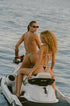 Our take on the Brazilian thong, the Jones bottoms are designed for the minimalists who like barely-there coverage. Featuring thin side straps and a gold FAE plate embellishment. Crafted in the finest quality sustainable Nylon.