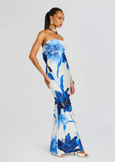 Indulge in elegance and allure with our Keaton Dress. Elevate your style with this exquisite gown boasting a flattering strapless neckline, an alluring open back, and crafted from a sumptuously silky fabric. Designed to captivate attention, this dress embraces sophistication and sensuality. The strapless silhouette offers a chic and elegant appeal while the open back adds a touch of allure, ensuring you radiate confidence and charm. Shown here in Azure Primavera.