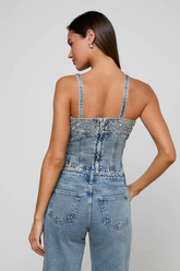 The L'agence Arlin Seamed tank Malibu , a refined embellished top crafted from soft, lightweight fabric. The Arlin Tank in Malibu features delicate detailing that adds a subtle touch of shine to an otherwise minimal silhouette.