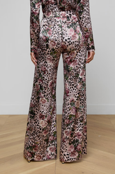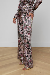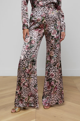 The Pilar Wide Leg Trouser from L'AGENCE is a perfectly proportioned statement pant, updated in luxurious 100% silk charmeuse with a bold rose cheetah print.