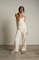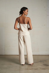 The linda top is part of our PWT tencel collection, designed with a soft drape and subtle sheen that elevates its minimal silhouette. featuring spaghetti straps, a deep v-neckline and a slightly tuliped hem, it brings a touch of dressiness while remaining versatile.