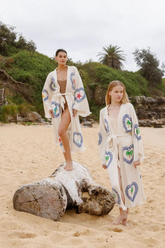 Sun-drenched and effortless. This hand-pressed palm print robe is your new everyday layer - made from breathable organic cotton with a relaxed drape that moves with you. Wear it poolside, over denim, or straight from bed to brunch. One-size perfection for the girl who does it all, effortlessly.
