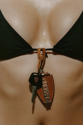 A sleek triangle bralette with a micro fit. Featuring over-the-shoulder adjustable straps, a tie-back closure and a custom gold FAE charm, it offers both comfort and style in one chic package. Crafted in the finest quality sustainable Nylon.