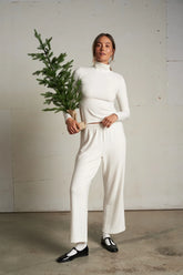 With a relaxed straight leg and easy pull-on waistband that feels effortless from couch to coffee; sitting at your natural waist with a full-length shape, it’s cozy but structured enough to wear beyond home and pairs perfectly with the Selma pullover or your fav chunky knit for cool-day vibes with zero effort.