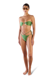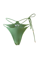 The Mona Bottom in Forest is a cheeky bikini bottom designed to turn heads. With barely there coverage, this unique design features ultra thin straps that can be tied on the sides, or wrapped around the belly for a unique look.