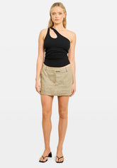 One Shoulder Key Hole Tank Black
