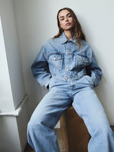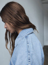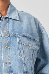 An updated take on a classic, the Palmer in light indigo from the Weightless Collection offers a relaxed, effortless vibe. Crafted from regenerative cotton, it features a subtle cropped body with low, exaggerated balloon sleeves for a modern twist. The lightweight feel of the fabric makes it perfect for layering throughout the seasons, while the light indigo wash adds a soft, lived-in appeal. A versatile piece that easily transitions from casual days to elevated looks.
