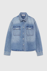 The Paxton Shirt is constructed from a midweight, rigid cotton denim blend in blue. This modern workwear staple features wide shoulders, two patch pockets at the chest and front placket complete with branded snap buttons.