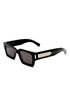 The Saint Laurent SL572 001 sunglasses deliver a bold, directional statement. Designed to stand out, this striking silhouette features an exaggerated corner angle and exposed metal wirecore detailing, creating a sharp, modern edge that feels unmistakably Saint Laurent.