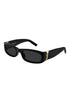 Make a bold statement with the Saint Laurent SLM152 F002 sunglasses. Featuring a monogram shape, this unisex design combines a sleek, narrow acetate frame with a modern wrapping silhouette for effortless, contemporary style.