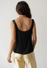 Indulge in effortless luxury with THE SILKY CAMI JET from Donni. This versatile top elevates any outfit with its relaxed fit and built-in shelf bra for added comfort. Perfect for any occasion, this cami is a must-have for the sophisticated wardrobe.