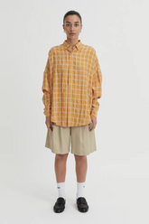 The Tommy Shirt in Mustard is a refined take on everyday shirting, designed to bring elevated ease to your wardrobe. This oversized silhouette offers a balance of structure and softness with its dropped shoulders, button-through front, and classic collar. Perfectly tailored at the cuffs and designed with a subtle high-low hem, it lends itself effortlessly to relaxed styling. Wear it tucked into trousers, layered under blazers or tied at the waist.