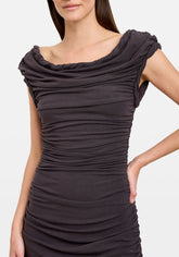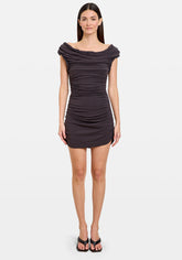 The TWIST EDGE MINI DRESS by CHOSEN is your statement styling piece for the season. Designed using a buttery soft jersey, featuring flattering gathering through waist and contemporary twisted neckline and armhole detailing.