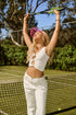 The Twist V Tank in White brings a playful, sporty edge to your summer rotation. Designed with a sculpting fit and bold cut-out twists through the front, it blends effortlessly sexy energy with that clean, minimal CHOSEN aesthetic. Perfect with denim, low-rise shorts, or layered under an open shirt, it’s a statement staple made for sun-drenched days, tennis-court moments, and every off-duty look that calls for a little extra attitude.